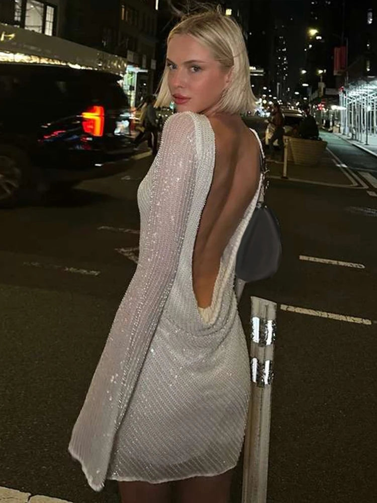 Shiny Sequins Backless Mini Dress for Chic Autumn Nights